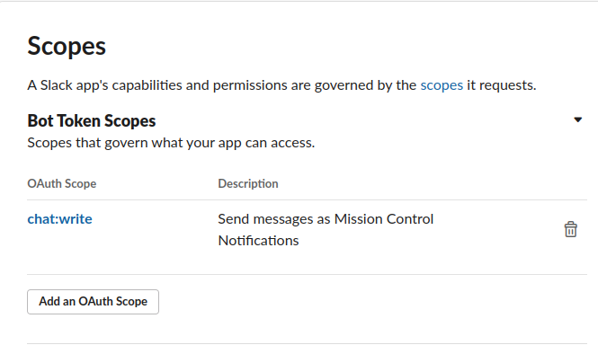 Bot APIslack://xoxb:123456789012-1234567890123-4mt0t4l1YL3g1T5L4cK70k3N@C001CH4NN3L?color=good&title=Great+News&icon=man-scientist&botname=Shoutrrrbot